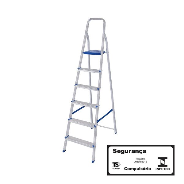 Escada de Alumínio Doméstica 6 Degraus - Mor